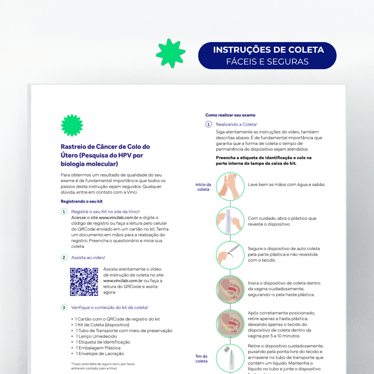 Prazo de entrega: O exame fica pronto em 8 dias úteis após a chegada do kit na Vinci. Nossa logística irá retirar o kit após a coleta.